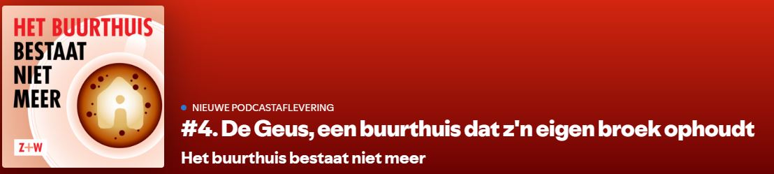 Luister naar de leuke podcast over de Geus; #4. De Geus, een buurthuis dat z'n eigen broek ophoudt - Het buurthuis bestaat niet meer 👉 https://open.spotify.com/episode/1mJF1nTR8Qe9I8x5Ar0cdR
