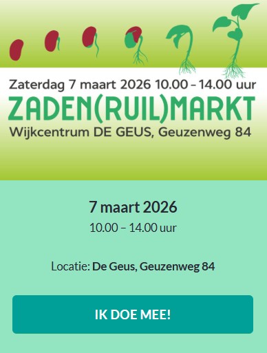 Op zaterdag 7 maart van 10 tot 14 uur houden we een zaden(ruil)markt in Wijkcentrum de Geus. Dit is het perfecte moment om zaden te krijgen en te ruilen zodat jij en de vogels en insecten dit jaar kunnen genieten van jouw (moes)tuin of groene buurt! Op de markt zijn verschillende workshops, kun je tips krijgen over zaaien, je tuingrond testen en andere Hilversumse ‘zaailingen’ leren kennen. Ook voor kinderen is er van alles te doen.